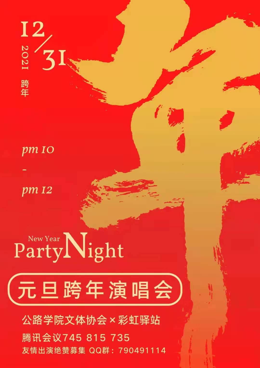 在这不平凡的年终岁末,在这众志成城的抗疫时刻,为缓解学校封控期间学生的焦虑情绪,进一步增强师生战胜疫情的斗志和决心,12月31日晚,公路学院组织举办2022年元旦云端跨年晚会,分为本科生跨年演唱会和研究生文艺晚会两个线上会场,院党委副书记刘徐、副院长蒋玮、学办全体辅导员及630余名本科生和研究生参加了这场意义非凡的文艺盛宴。