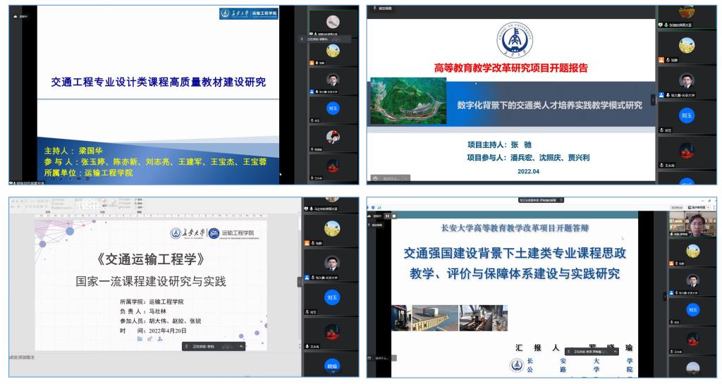 2022年4月20日上午,根据学校《关于做好2021年校级教育教学改革研究项目开题工作的通知》要求,公路学院联合运输工程学院、长安都柏林国际交通学院,以视频连线的方式召开了2021年度校级教学改革研究项目开题工作会。
