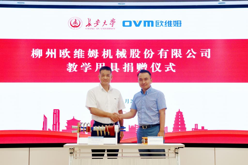 会上,公路学院院长汪海年、工程机械学院院长叶敏分别代表学院与欧维姆公司签署了战略合作协议,双方将充分发挥各自优势领域,积极开展合作。公路学院副院长韩万水、工程机械学院党委副书记雷剑分别接受了欧维姆公司捐赠的教学用具和奖、教学金。