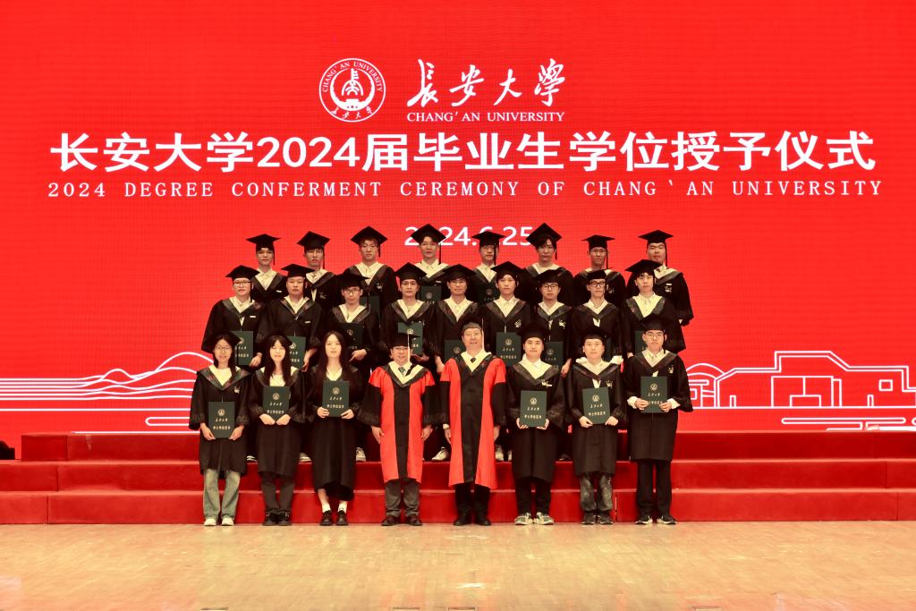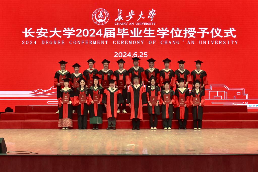 副院长马峰宣读博士和硕士学位授予名单,教学主管张晔宣读学士学位授予名单,院长汪海年、党委书记张久鹏为毕业生颁发学位证书。