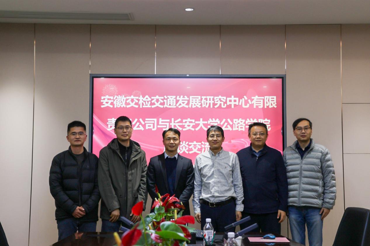 在道路桥梁检测监测、养护管理、智慧交通等领域的学科特色与科研优势。他指出,安徽交检在工程检测、技术咨询、成果转化等方面具有丰富的实践经验,与学院在科研攻关、人才培养、平台共享等方面合作空间广阔。希望双方以此次交流为契机,围绕交通基础设施全寿命周期管理、智能化检测技术、养护决策体系构建等方向深化合作,共同推动产学研用深度融合。