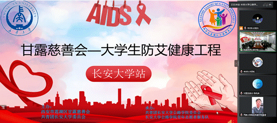 2022年12月1日是第35个“世界艾滋病日”,当晚,由西安市莲湖区甘露慈善会、共青团长安大学委员会主办,长安大学公路学院关工委、共青团长安大学公路学院委员会承办的“防艾公益行—大学生防艾健康工程”长安大学线上专题讲座顺利开展。