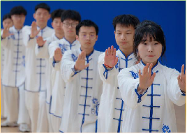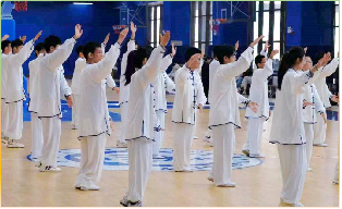 4月1日9时30分,太极拳比赛于西区体育馆拉开帷幕。公路学院的选手们身袭青花白衣,随着一声"起势",将手徐徐抬至腰间,随后推掌、云手、提膝。一招一式,形神兼备,如行云流水,似青柳扶风,把太极拳刚柔两面表现得淋漓尽致。