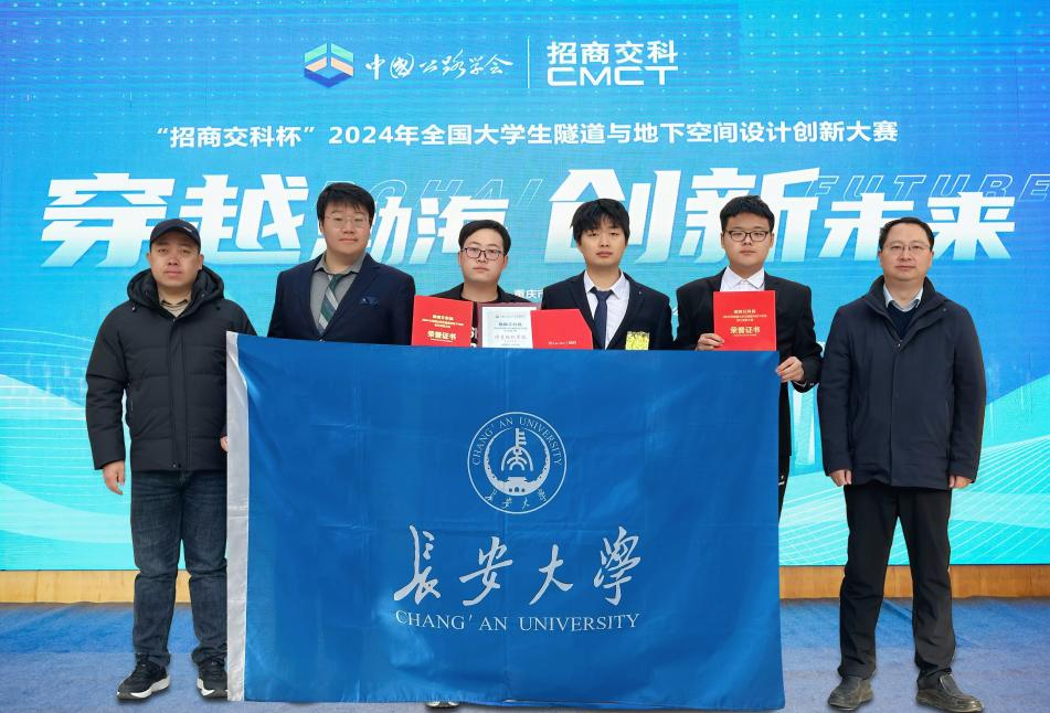 中国公路学会、招商局重庆交通科研设计院有限公司主办,中国公路学会隧道工程分会、重庆交通大学承办的“招商交科杯”2024全国大学生隧道与地下空间设计创新大赛全国总决赛于2024年12月1日在重庆举行。经过一天激烈的角逐比拼,由我院罗彦斌教授和刘伟伟副教授指导,赵建、李屹、王怡凡、王琦轩和邢远赫组成的队伍斩获一等奖,长安大学获得优秀组织单位,罗彦斌教授和刘伟伟副教授获得优秀指导教师。