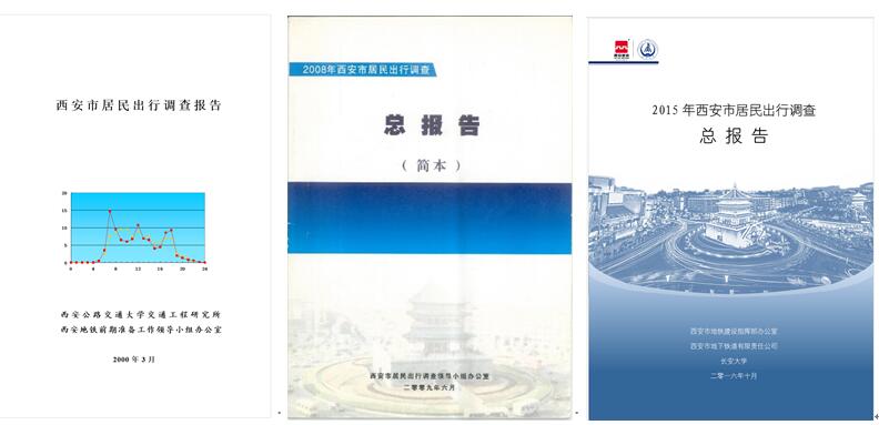 长安大学交通与道路总体工程研究所先后承担了2000年、2008年、2015西安市以居民出行调查为核心的综合交通调查工作,为西安市城市轨道交通规划与建设工作的顺利开展提供了数据技术支撑,也为城市交通规划、建设、管理和政策制定提供了重要的参考依据。
