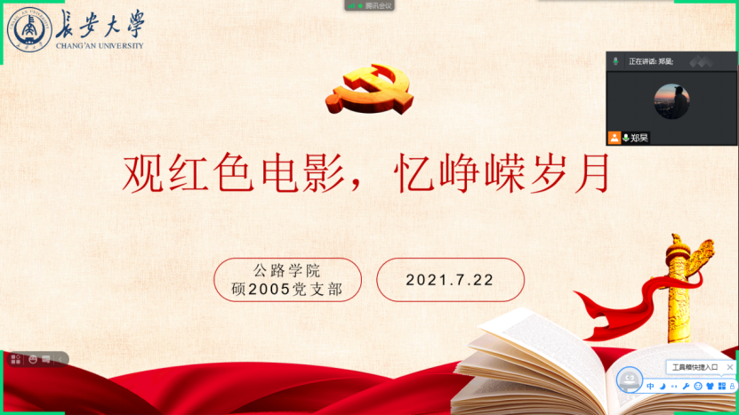 在建党100周年之际,为深化党史学习教育,厚植爱国主义情怀,进一步推动红色精神的传承,公路学院研究生党支部在党委号召下于7月5日以来陆续开展“五个一百”系列学习活动,本次活动以重温百部红色影片为主题展开。