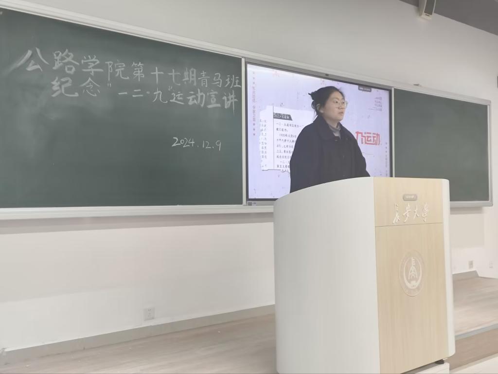 为深入学习贯彻党的二十届三中全会精神和全国教育大会精神,纪念“一二·九”学生爱国运动89周年,加强我院青年学生爱国主义教育,继承革命传统,弘扬民族精神。12月9日晚于WH2208教室召开公路学院第十七期青马班纪念“一二·九”运动主题宣讲。2024级本科生辅导员何子毅以及青马班全体同学参加了此次宣讲。