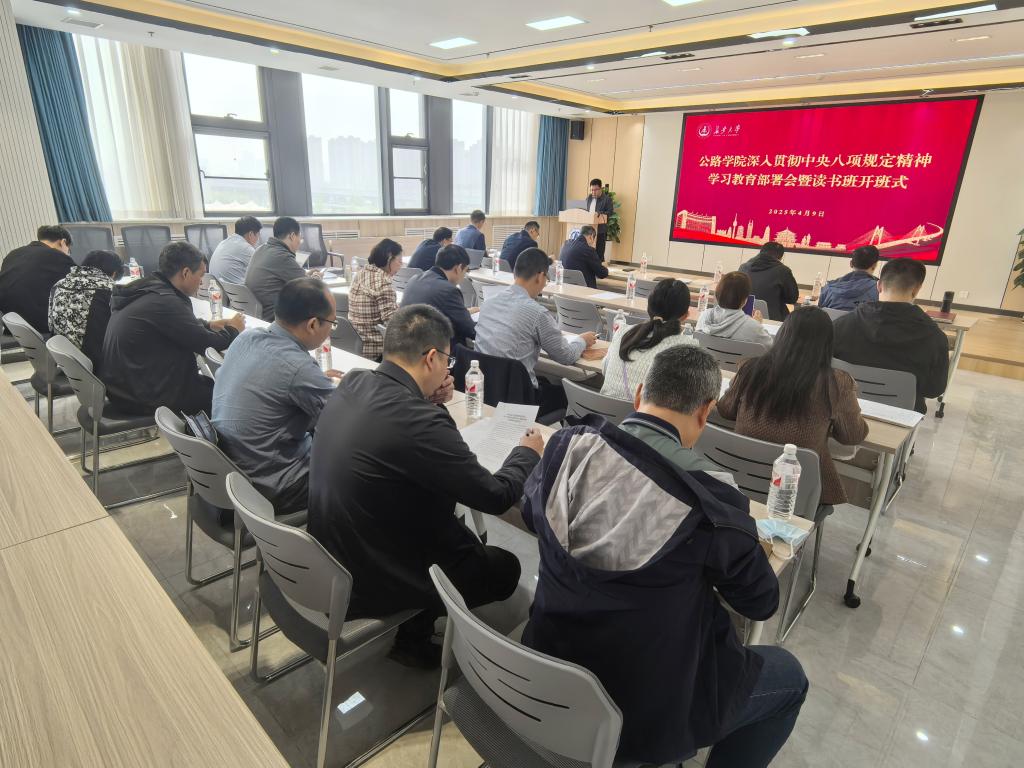 4月9日上午,公路学院领导班子深入贯彻中央八项规定精神学习教育读书班开班式暨工作部署会在北校区弘毅大厦六层第三会议室召开,学院领导班子、科级干部、教工党支部书记和学生党建工作负责人参加会议。院党委书记张久鹏主持会议并讲话。