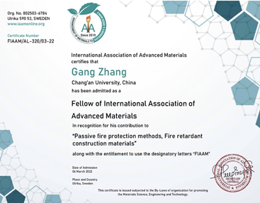 2022年4月6日,公路学院张岗教授当选国际先进材料协会(International Association of Advanced Materials,IAAM)会士(FIAAM),以表彰其在“桥梁结构智能防火新方法与新材料”领域做出的突出贡献。张岗教授应邀做了“IAAM Fellow Lecture 2022”的会士报告,着重介绍了研究团队在智能纤维混凝土的熔热阻爆机制和高性能组合结构桥梁抗火与防护新技术方面的系统工作。