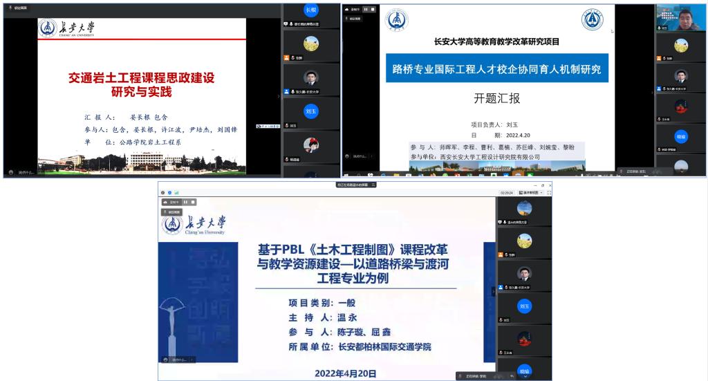 2022年4月20日上午,根据学校《关于做好2021年校级教育教学改革研究项目开题工作的通知》要求,公路学院联合运输工程学院、长安都柏林国际交通学院,以视频连线的方式召开了2021年度校级教学改革研究项目开题工作会。
