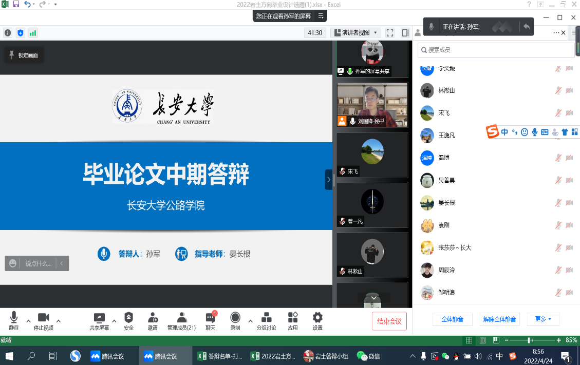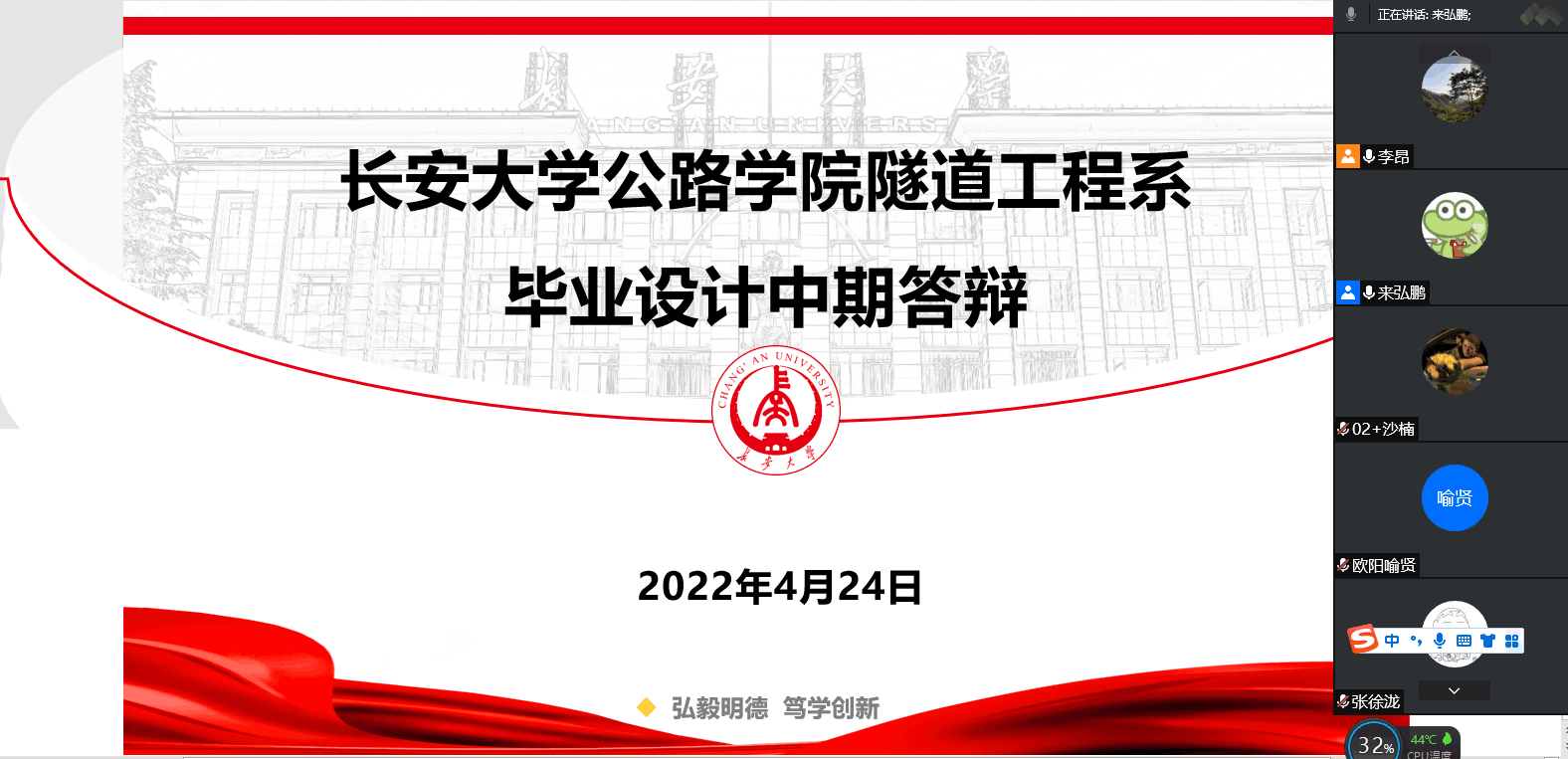 为切实加强毕业设计(论文)的过程管理,及时了解和掌握学生毕业设计(论文)进展及完成情况。根据教务处《关于开展2022届本科毕业设计(论文)中期检查的通知》要求,学院于2022年4月17日到4月24日开展本科毕业设计(论文)中期答辩工作。道路桥梁与渡河工程(国际工程班)、道路工程、道路总体工程、桥梁工程、岩土工程、隧道工程方向学生进行了中期答辩。答辩分为线上和线下两种方式,共涉及175名指导教师、476名学生、33个答辩小组。学校、学院教学督导全程进行了跟踪检查。