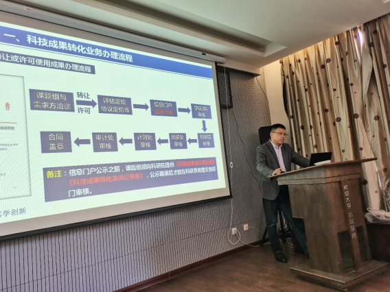 查方勇从科技成果转化政策解读、科技转化考核的指标解读、科技转化业务办理流程、转化收益分配比例、校内外典型转化案例分析及科技成果转化路径等方面介绍了学校科技成果转化的基本情况。针对91大神