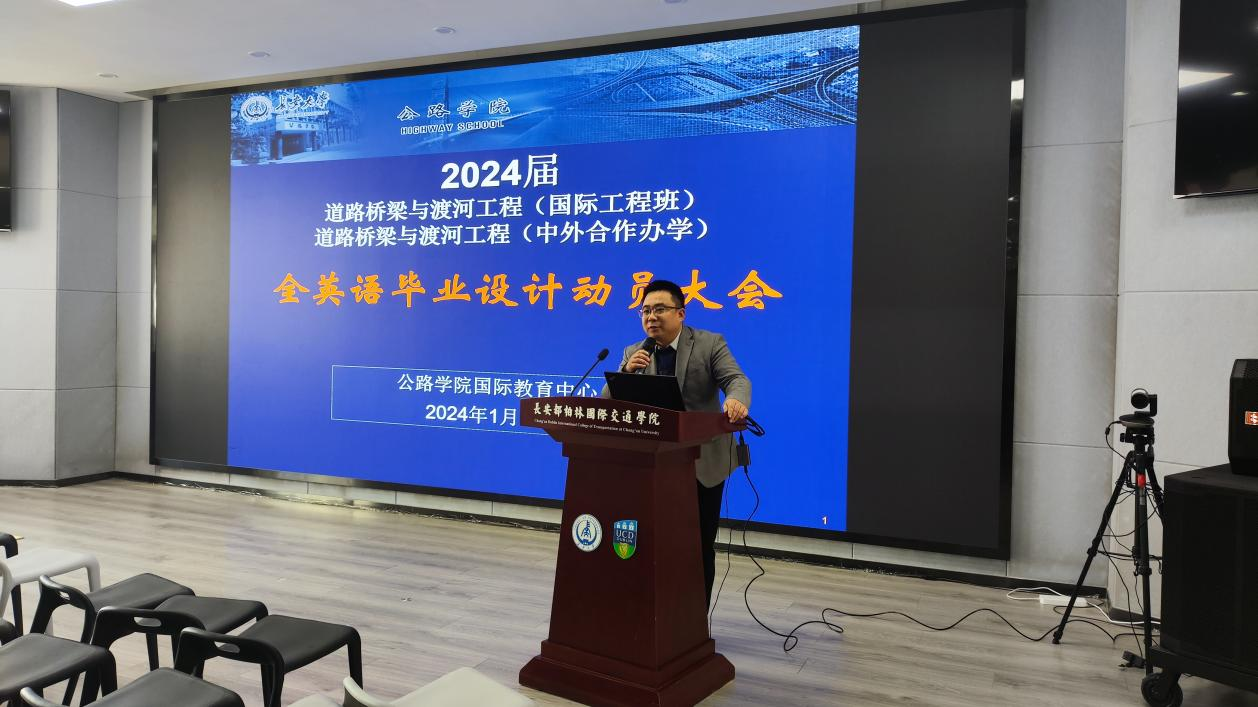 2024年1月11日下午2:00,国际教育中心召开2024届道路桥梁与渡河工程(国际工程班)、道路桥梁与渡河工程(中外合作办学)全英文毕业设计动员会。91大神