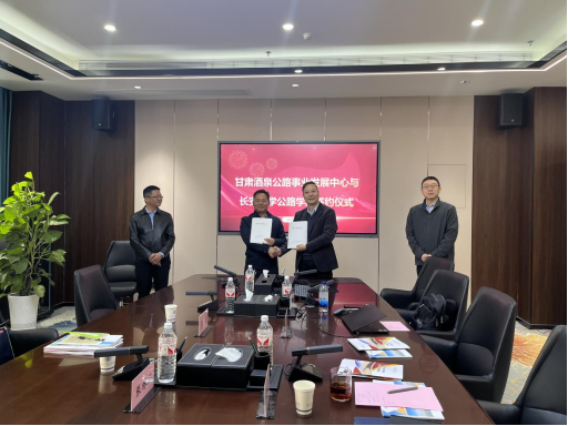 会上,汪海年代表学院与甘肃省酒泉公路事业发展中心签署了战略合作协议,双方将充分发挥各自优势领域,积极开展合作。甘肃省酒泉公路事业发展中心技术科副科长李园,公路学院机场工程系副主任惠冰、办公室主任王志坤等参加座谈。
