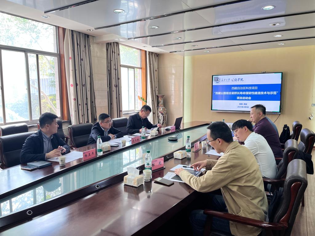 2025年4月8号,由西藏交通勘察设计研究院有限公司、长安大学、西藏天路股份有限公司和中交第一公路勘察设计研究院有限公司,共同承担的西藏自治区科技项目“西藏公路组合梁桥长寿命强韧性建造技术与示范”启动会在长安大学公路学院顺利召开。
