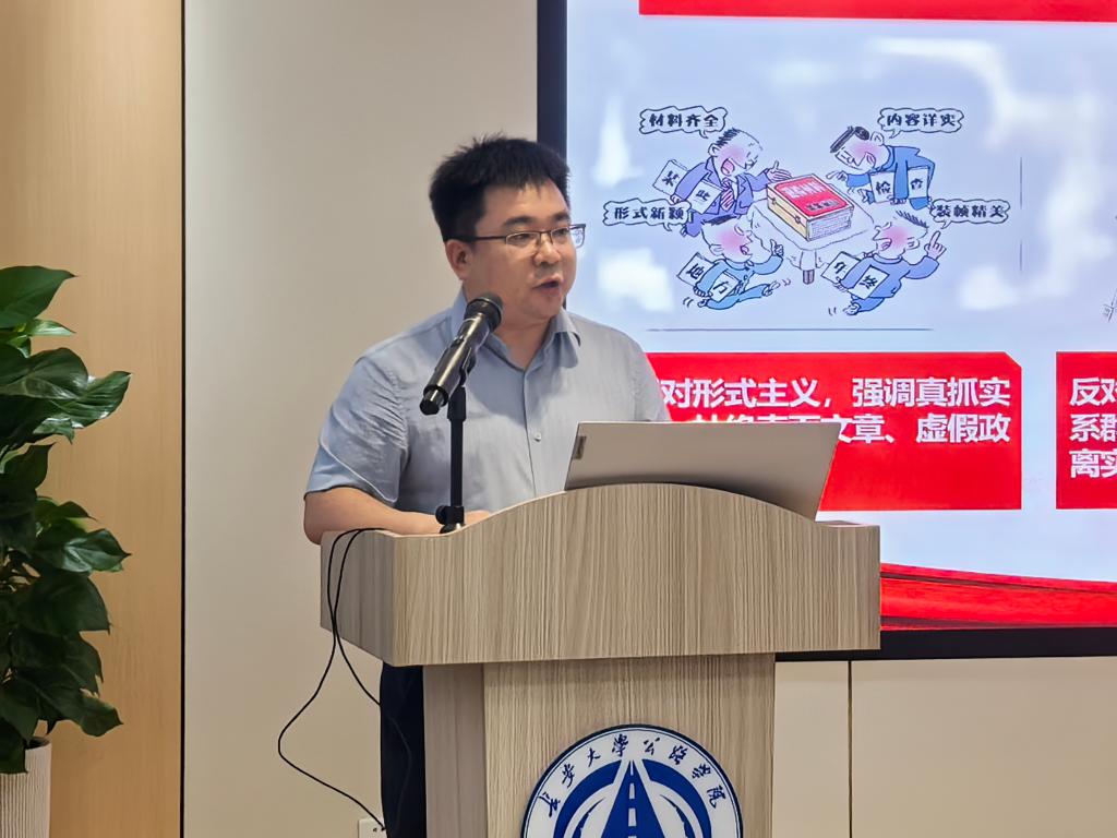 6月19日,公路学院面向全体教职工开展深入贯彻中央八项规定精神学习教育专题党课。此次党课以线下和线上形式结合开展,由院党委书记张久鹏主讲。学院领导班子成员、教工党支部书记、系(中心)主任、科级干部在北校区弘毅大厦六层第三会议室参加,其他教职工线上参会学习。