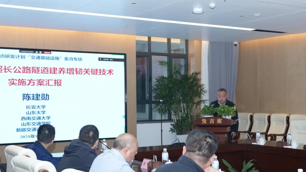 长安大学陈建勋教授作为项目负责人详细介绍了项目概况及总体实施方案,西南交通大学胡雄玉教授、山东大学张庆松教授、长安大学罗彦斌教授、山东交通学院李志鹏教授、新疆交通规划勘察设计研究院有限公司刘杰正高级工程师作为课题负责人汇报了课题实施计划。