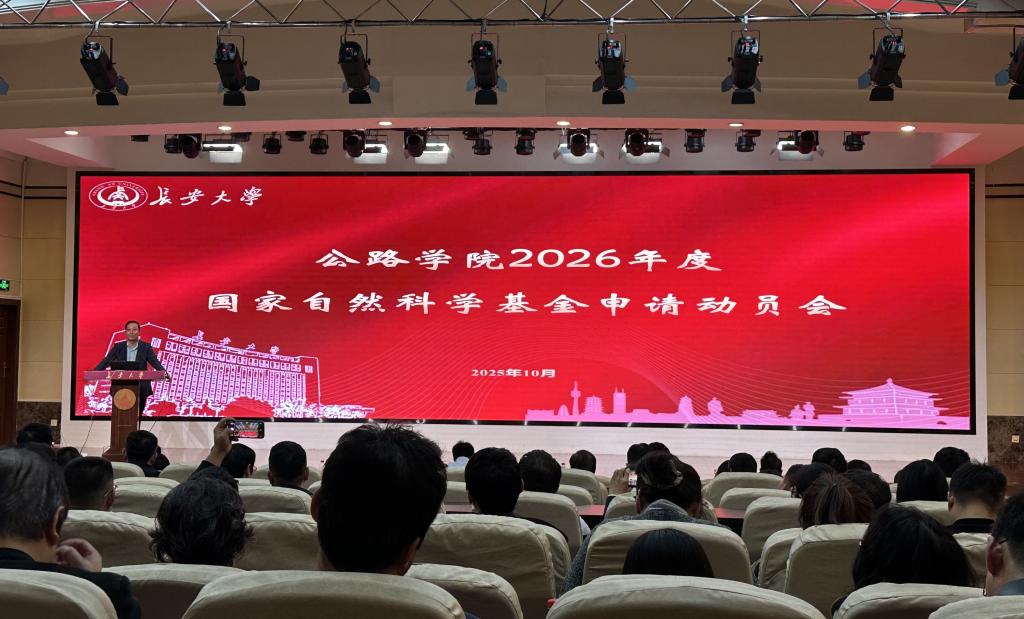 为推进2026年度国家自然科学基金项目申报工作,提升基金项目申报质量,公路学院于2025年10月16日晚在南校区学术交流中心召开国家自然科学基金申报动员会。科学研究院副院长兼项目管理中心主任王亚琼、学院领导、各系主任及全体2026年度国家自然科学基金申报教师参加会议。会议由学院党委书记张久鹏主持。