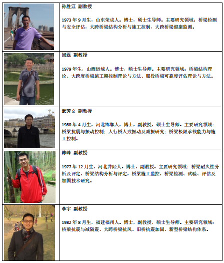 桥梁与隧道学科招收学术型与专业行硕士研究生,学制均为3年,其中,桥梁方向开设弹塑性力学、结构工程数值方法、桥梁结构理论、混凝土结构理论、结构可靠度、结构动力学、结构稳定理论、结构疲劳与断裂、桥梁模型试验、桥梁风振与振动控制、桥梁地震动与减隔震、桥梁结构非线性与仿真、桥梁监控与健康监测、桥梁结构防灾与减灾、桥梁评定与加固方法、桥梁概念设计、桥梁工程发展趋势等专业课程。开设以下研究方向: