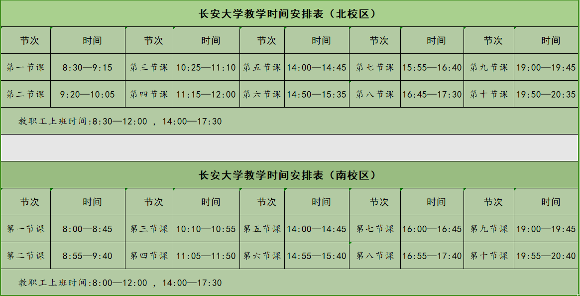 关于公布《长安大学2023年秋季学期教学时间安排表》的通知