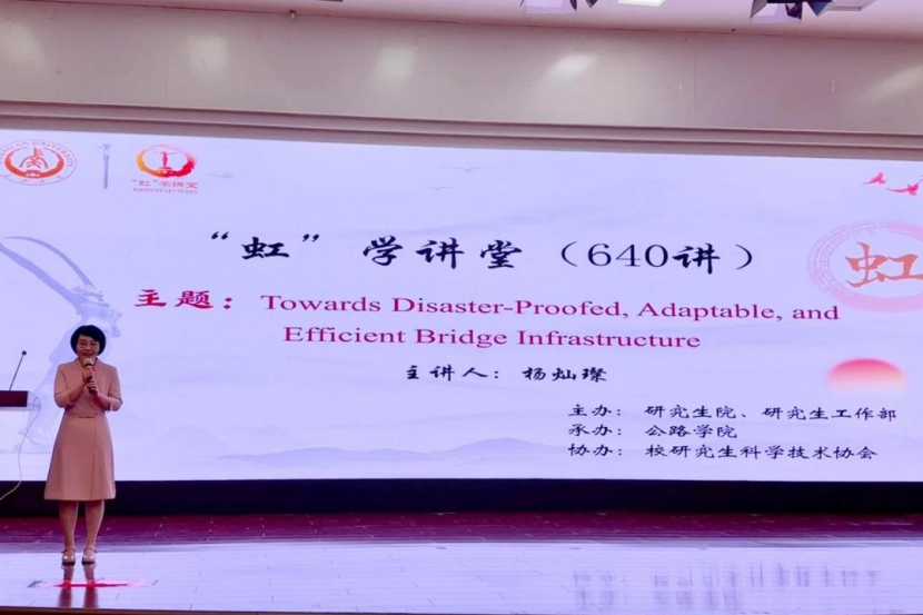 On the morning of May 14, the 640th "Hong" Academic Lecture, organized by the Graduate School and the Graduate Work Department, hosted by the Highway College, and co-organized by the University Graduate Science and Technology Association, was successfully held at the Academic Exchange Center of the North Campus of the South Campus. Associate Professor Yang Cancan from the Department of Civil Engineering at McMaster University, Canada, and Director of the Applied Dynamics Laboratory, delivered a report titled "Towards Disaster-Proofed, Adaptable, and Efficient Bridge Infrastructure." The lecture was chaired by Teacher Hao Jianming from the Highway College, with a total of 210 faculty members and students from related colleges in attendance.