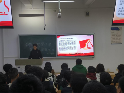 公路学院学生会于2023年9月26日于WH2307教室开展了“高举思想旗帜,推进民族复兴伟业”的主题团日活动。公路学院学生会指导老师、院团委副书记王达以及学生会全体成员参与了此次团日活动,活动由公路学院学生会执行主席张骥先主讲。