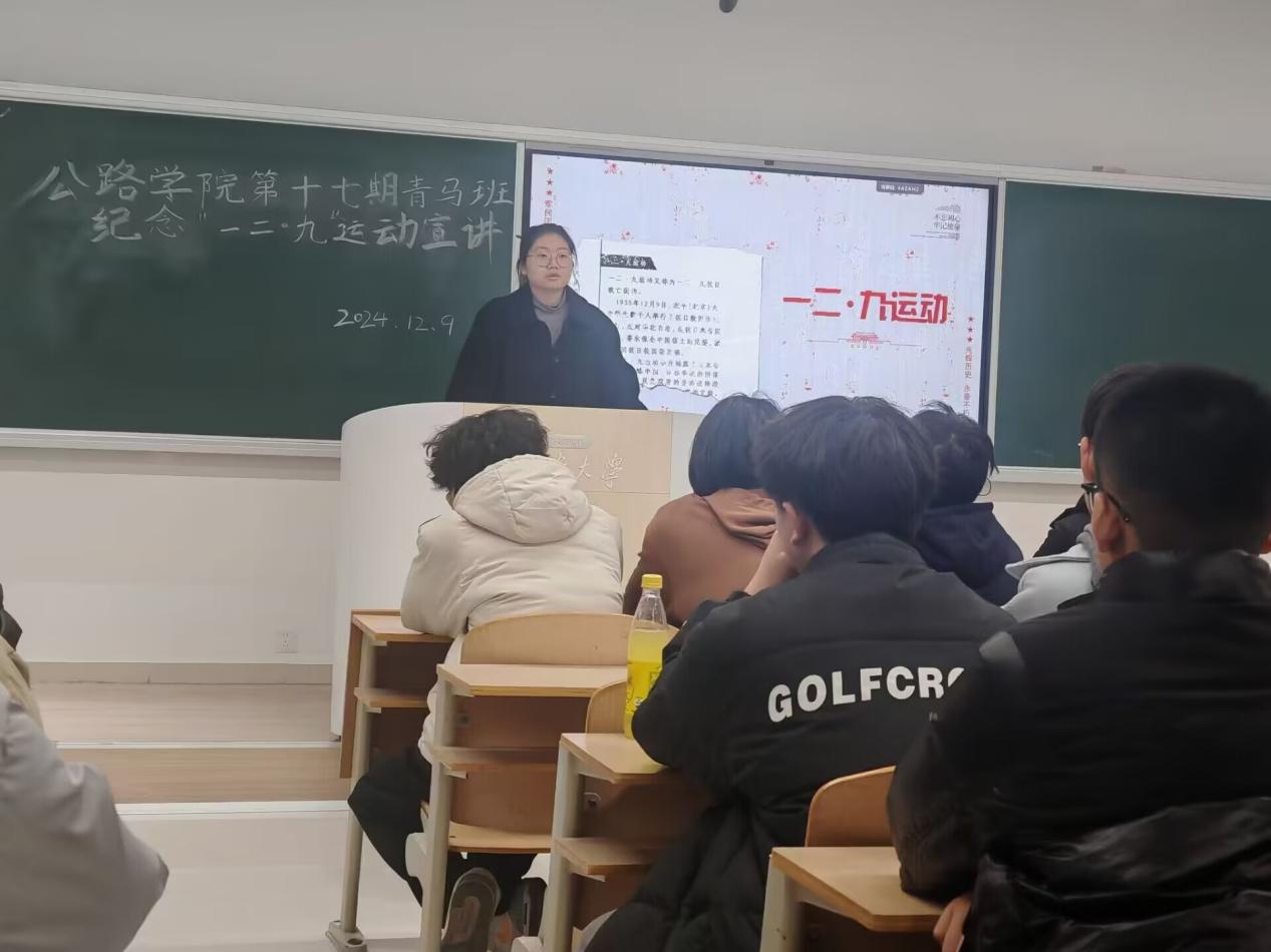 为深入学习贯彻党的二十届三中全会精神和全国教育大会精神,纪念“一二·九”学生爱国运动89周年,加强我院青年学生爱国主义教育,继承革命传统,弘扬民族精神。12月9日晚于WH2208教室召开公路学院第十七期青马班纪念“一二·九”运动主题宣讲。2024级本科生辅导员何子毅以及青马班全体同学参加了此次宣讲。