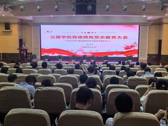 6月2日,公路学院在南校区北院学术交流中心报告厅召开师德师风警示教育大会,进行师德师风警示教育。会议由学院党委副书记刘徐主持。