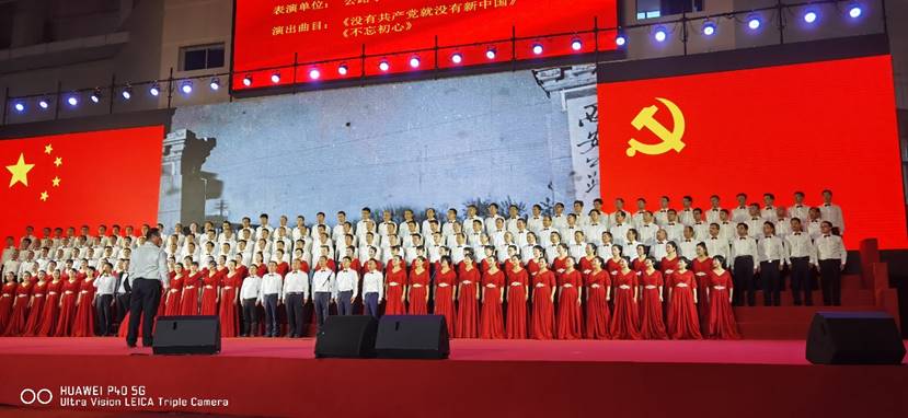 为了在比赛中展现我院风采,充分表达对党的恩情,我院教师在院长陈建勋、院党委书记汪海年的带领下,由院党委副书记刘徐、院工会副主席路西利共同组织,选取了能表达全院教师心声的“没有共产党就没有新中国”、“不忘初心”两首歌曲,致敬我们党团结带领中国人民不懈奋斗的光辉历程、伟大贡献和历史启示,也深刻铭记“中国共产党人的初心和使命,就是为中国人民谋幸福,为中华民族谋复兴。”