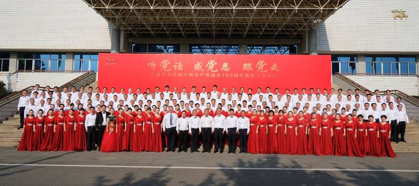 为庆祝中国共产党成立100周年,2021年6月27日下午,校工会组织各学院/部门在南校区体育馆举办“听党话 感党恩 跟党走”长安大学庆祝建党100周年大型歌唱比赛活动,回顾党的光辉历程,歌颂党的丰功伟绩。